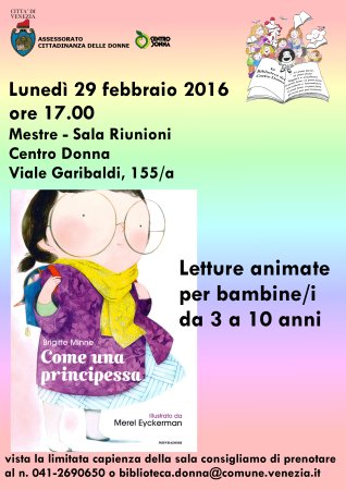 Il Servizio Cittadinanza delle Donne e Culture delle differenze - Centro Donna organizza un pomeriggio di letture animate per bambine/i da 3 a 7 anni.Lunedì 29 febbraio 2016 ore 17.00