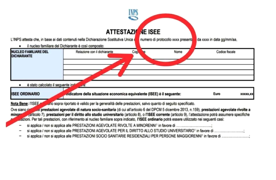 Per effettuare la ricerca, utilizzare il numero di protocollo INPS riportato in alto a destra sull’attestazione ISEE (vedi fac-simile